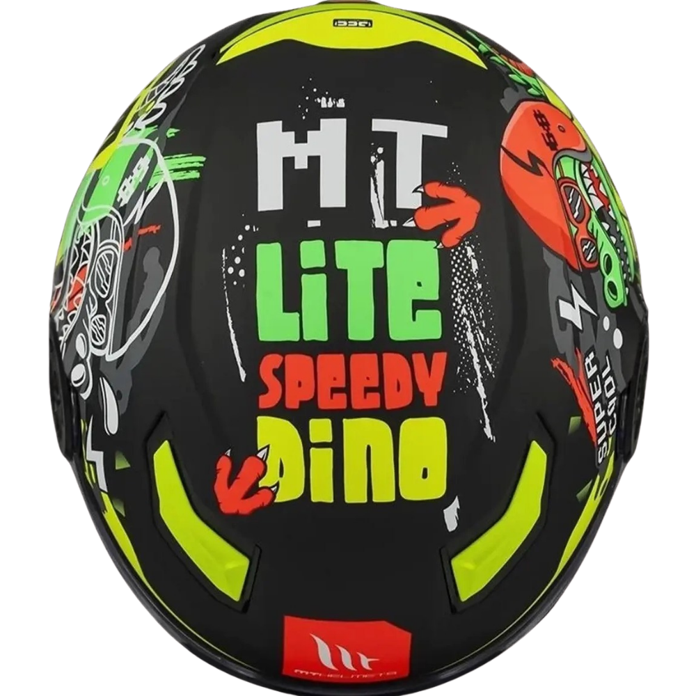 Aerodinamik Tasarım- Dino grafiklerini taşıyan mat yüzeyli, rüzgar direncini ve boyun yorgunluğunu minimize eden hafifletilmiş dış form.